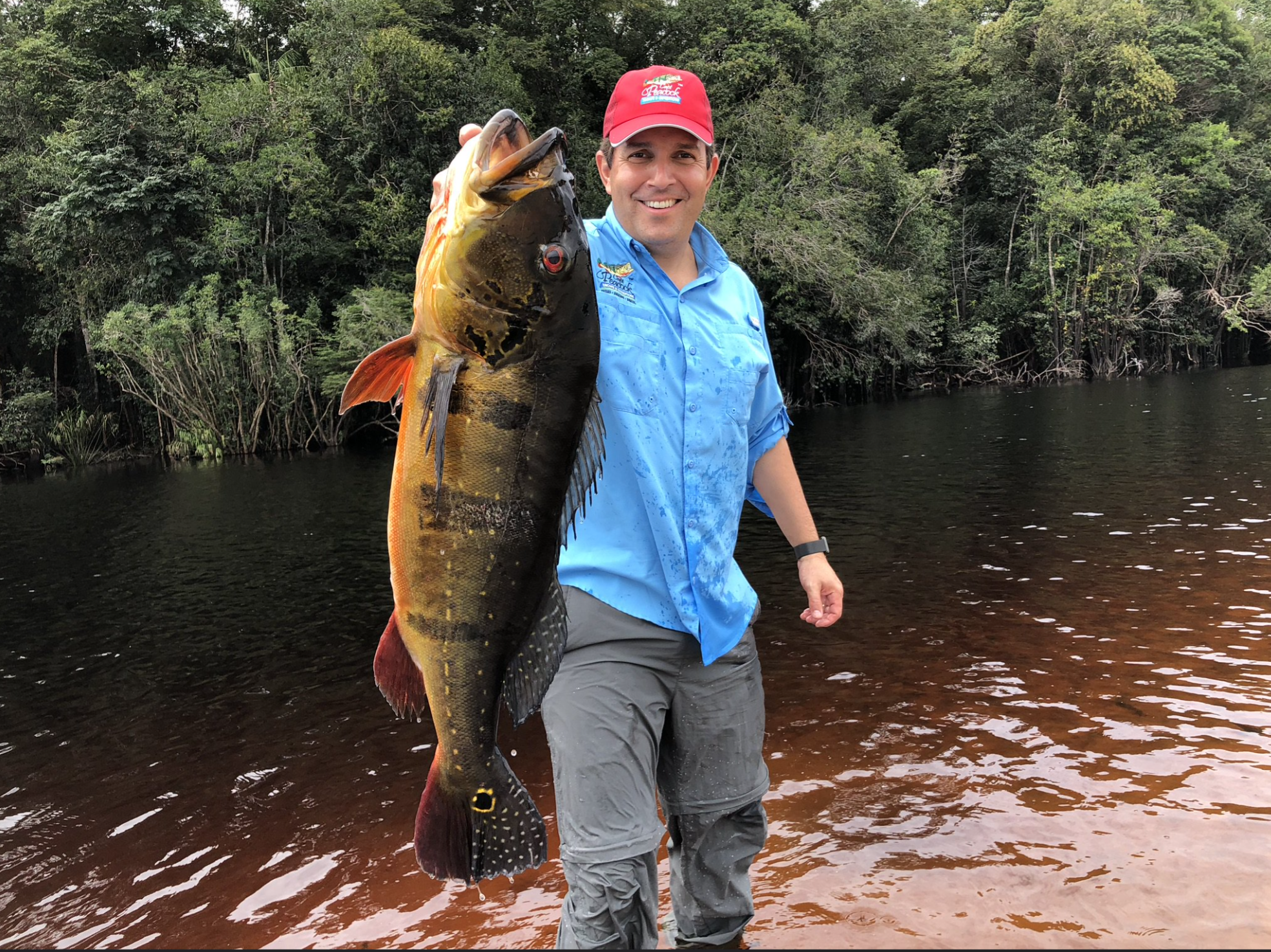 Amazon peacock bass live in freshwater—and not just any freshwater. They thrive in Brazil’s blackwater systems, where the water is warm, stained with tannins, and filled with submerged structure. These low-oxygen environments filter out most species, but not the peacock bass. They dominate here. Unlike lake fish, peacock bass in these Amazon waters are conditioned for ambush: explosive, hyper-territorial, and aggressive year-round. Every cast is a potential explosion in this ecosystem. That’s why peacock bass fishing in Brazil isn’t just possible—it’s exceptional.